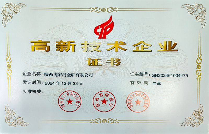喜報!陜西龐家河金礦榮獲2024年度高新技術(shù)企業(yè)認證
